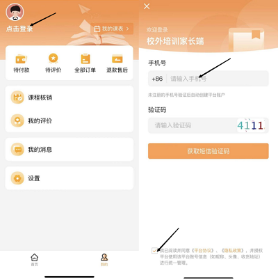 2、打开软件之后,在“我的”页面→“点击登录”→“手机验证码登录”→“阅读、同意和勾选《用户协议》和《隐私政策》”→点击“登录”;