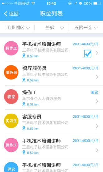 5.直观的地图模式,让您轻松知道身边的工作信息。上班地点、距离远近,均显示在地图上,让您随便挑,随便投。
