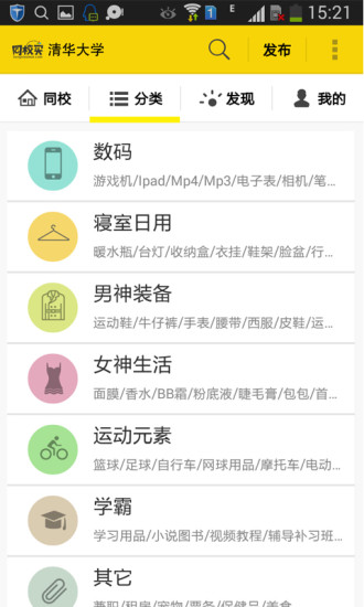 同校卖app 让你可以将自己闲置物品进行交易、转手,让所有的物品和道具都可以物尽其用,无论是数码用品、亲是用品、男神/女神用品、运动装备、学霸工具等这里都应用尽有,你可以在这里将自己的商品进行出售和购买他人所贩卖道具。