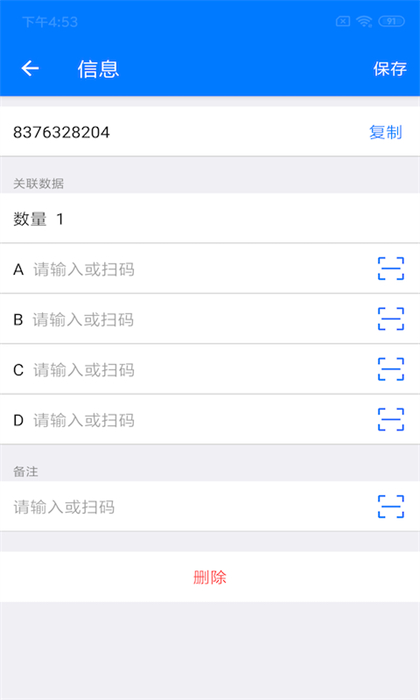 \n\t应用支持客户进行批量扫码录入,让客户可以轻松的进行录入;\n