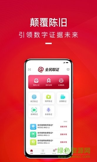 全民 取证app 是一款专业的取证工具,平台具有相应的法律性,支持网页取证、拍照取证、录屏取证、录音取证等功能,在线使用方便快捷,数据信息一键保存,电子取证更靠谱,欢迎来绿色资源网下载!
