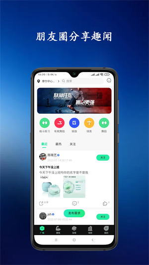 3、促进运动者之间的交流与活动,很多的用户都可以在这里运动。
