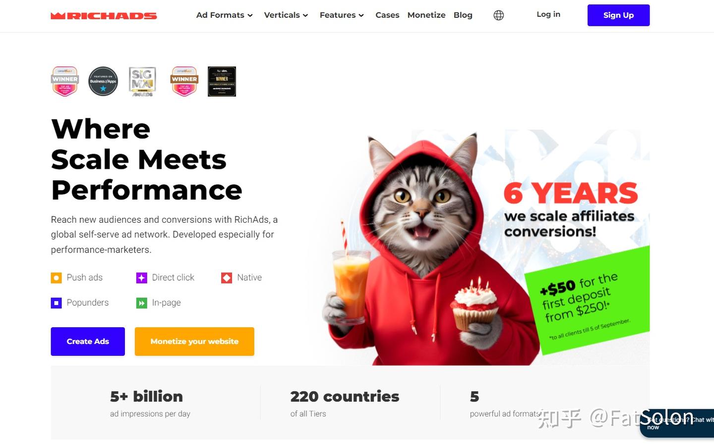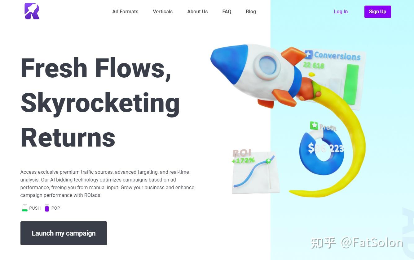 成立于2023年,是一家很新的流量源。ROIads提供pop和push流量,每日广告展示超过9亿次。营销人员可以在超过150个地区全球投放广告,并提供自动规则和自定义出价等优化工具。