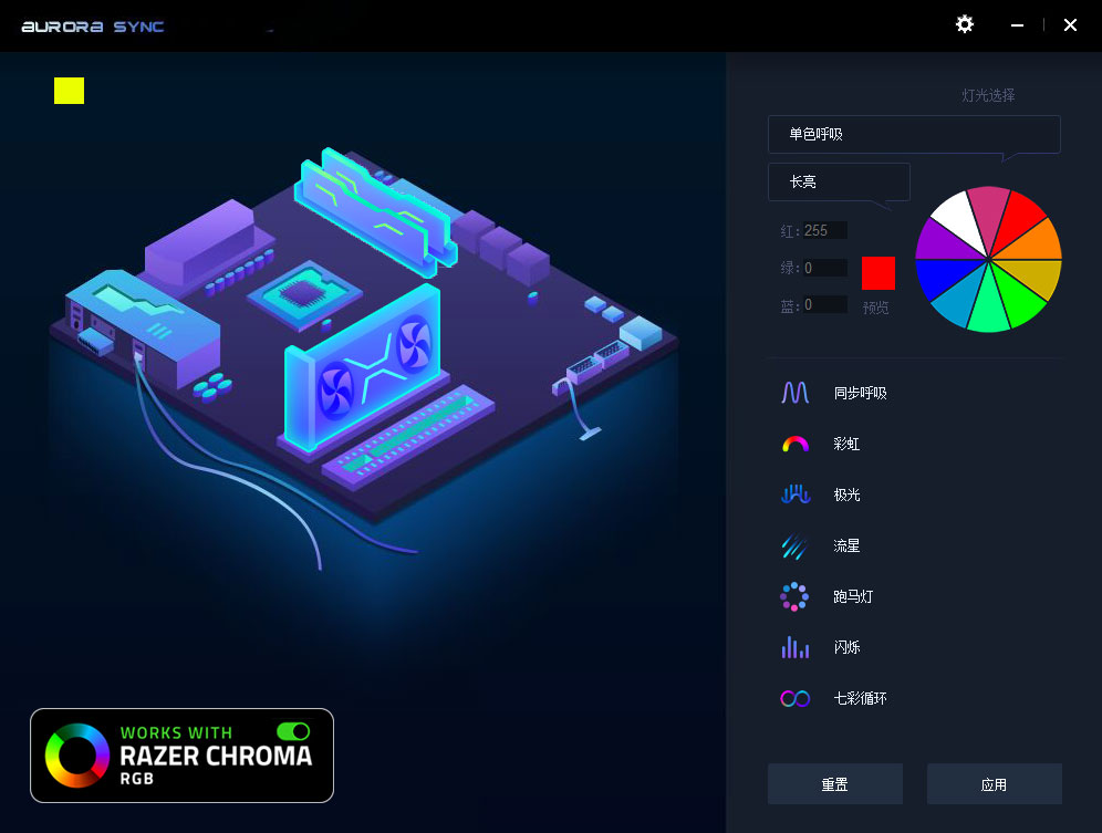 galax aurora sync 可以帮你调节设备显示的灯效,支持市面上所有的主板可以快速进行设置,让你快速控制灯效显示的效果。内置多种光效,你可以根据场景自由选择,还可以自己设置色调显示。而且可以自由设置显示跳动的频率,欢迎有需要的朋友下载使用!